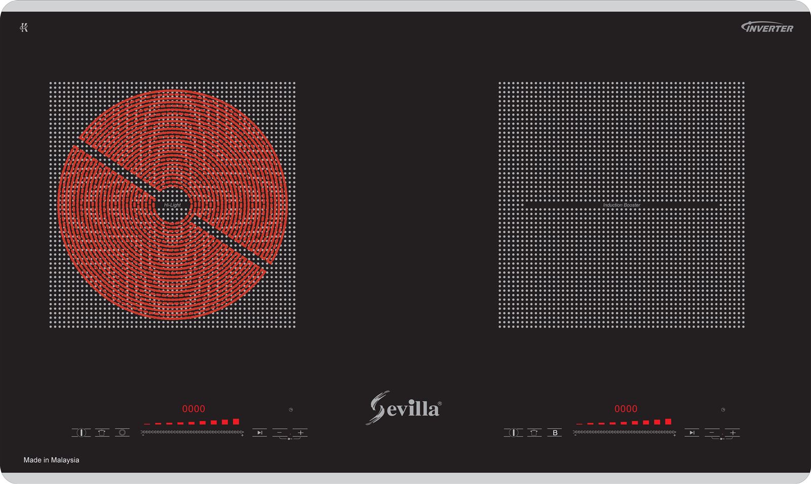 - Chức năng lựa chọn 2 vòng bếp điện phù hợp với từng kích thước nồi