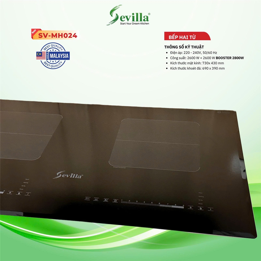 Bếp điện từ đôi Sevilla SV-MH024 là lựa chọn hoàn hảo cho những ai yêu thích nấu ăn và muốn sở hữu một sản phẩm hiện đại, tiện lợi. Với thiết kế sang trọng và nhiều tính năng thông minh, bếp mang đến sự tiện nghi tối đa cho không gian bếp của bạn.