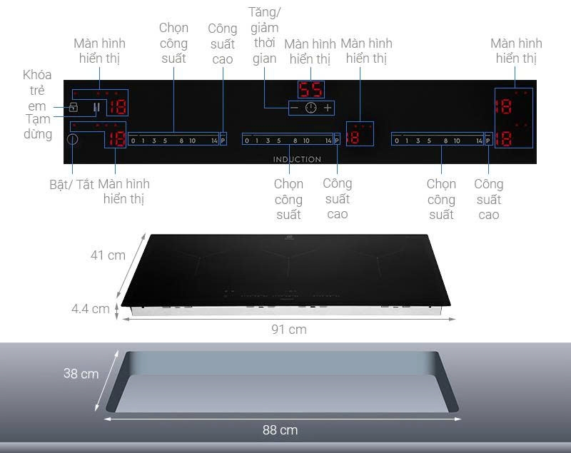 Đánh giá Bếp từ 3 vùng nấu lắp âm Electrolux EIT913