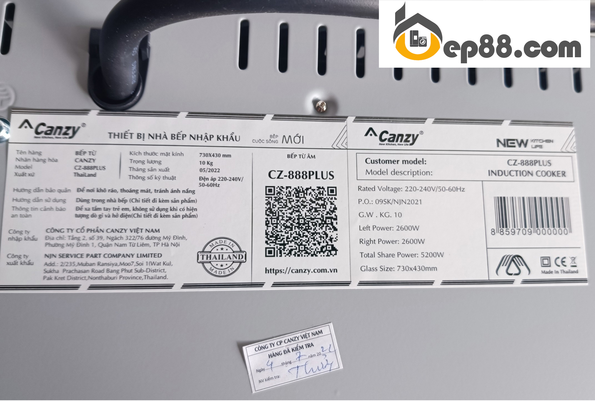 Bếp từ Canzy CZ 888 Plus được nhập khẩu nguyên chiếc từ Thái Lan.