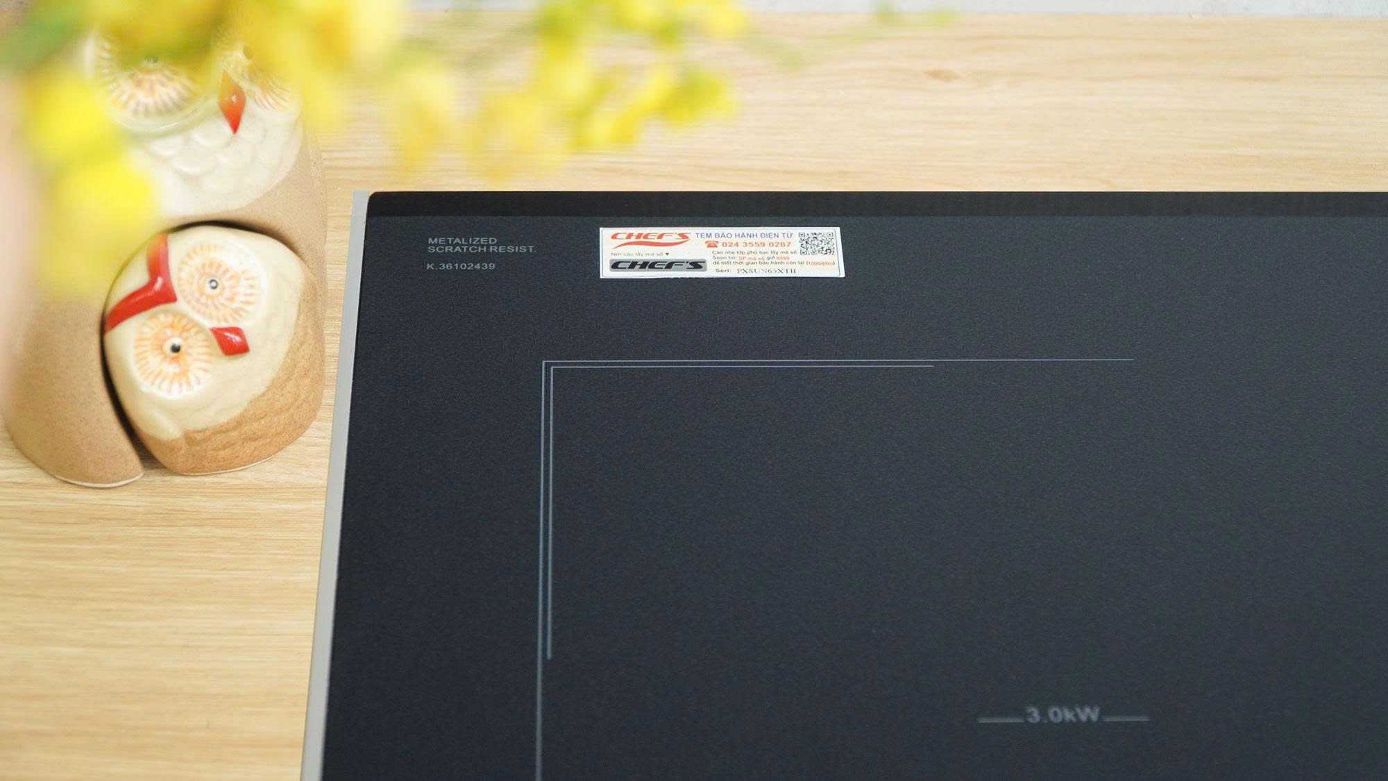 Chef's EH-DIH361 PRO sở hữu mặt kính Metalized Scratch Resist với lớp phủ kim loại đặc biệt giúp tăng khả năng chống trầy xước. Trong quá trình sử dụng, ngay cả khi có bụi hoặc cặn dưới đáy nồi, bề mặt bếp vẫn dễ dàng lau sạch và giữ được độ sáng bóng lâu dài. Thiết kế bo viền tinh tế góp phần nâng cao tính thẩm mỹ cho không gian bếp.