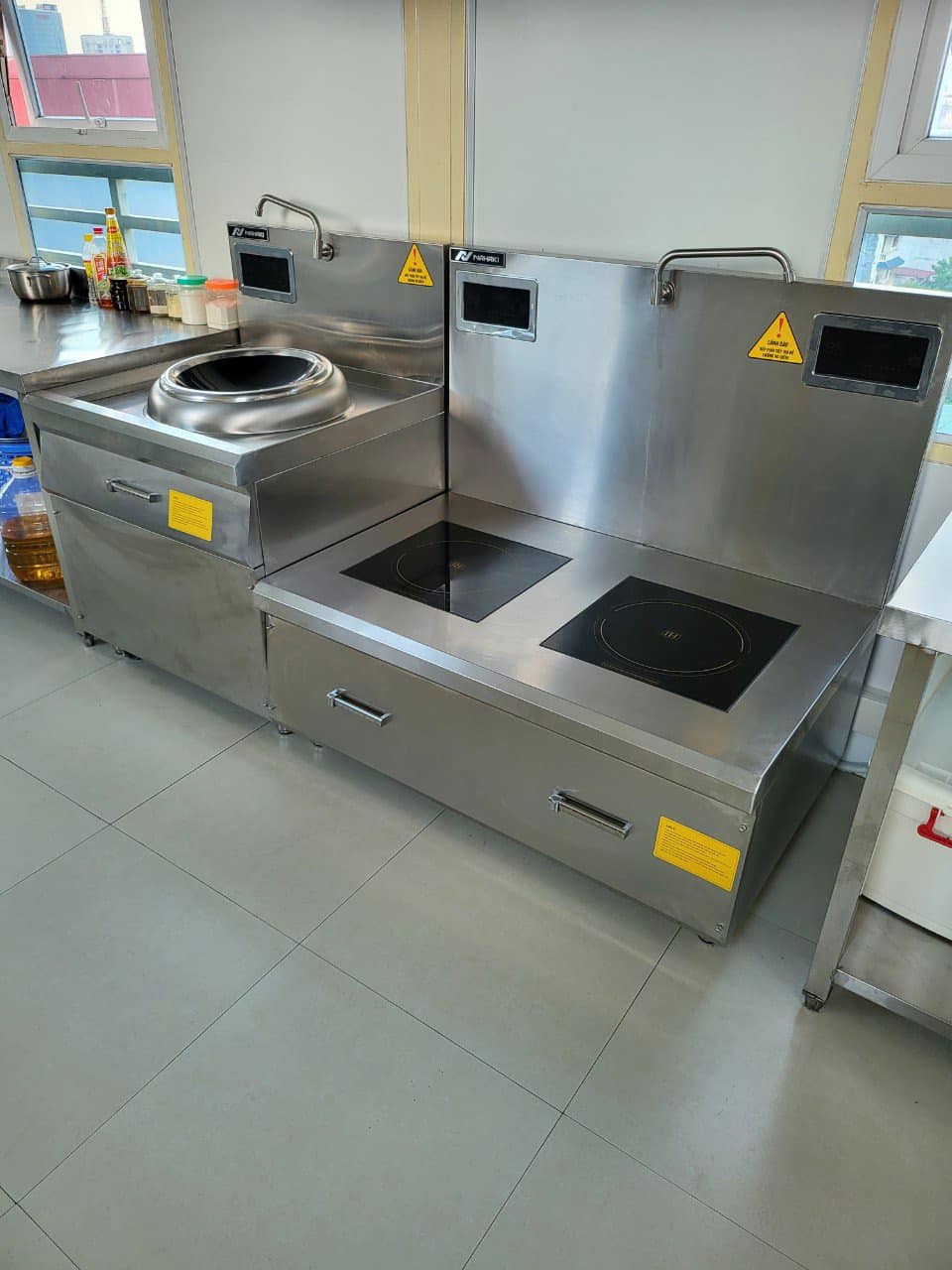 Ảnh thực tế Bếp từ công nghiệp đôi 15kW mặt phẳng tại nhà hàng Hoàng Quân