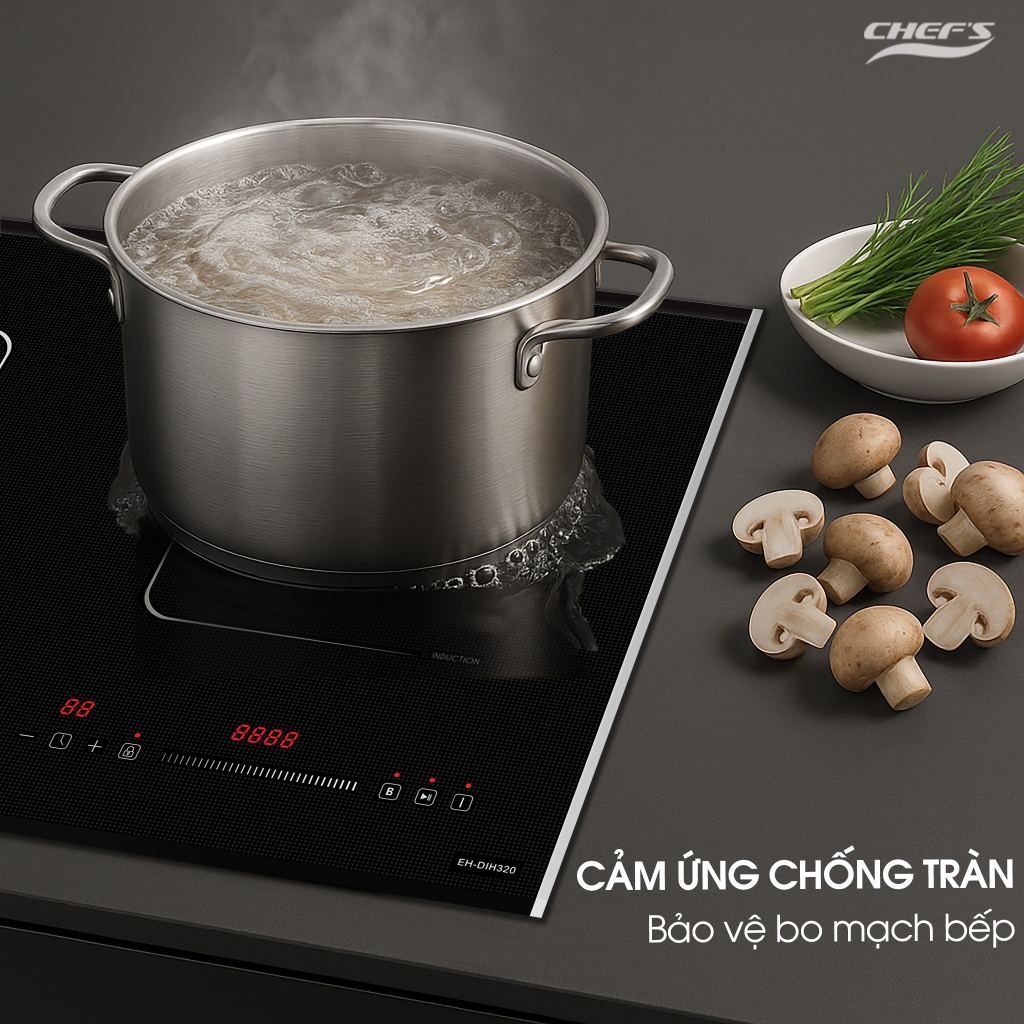 Bếp từ Chefs EH DIH320 là dòng bếp đôi cao cấp nổi bật với thiết kế hiện đại, mặt kính Crystal Ceramic vát cạnh sang trọng và hệ thống điều khiển cảm ứng trượt siêu nhạy. Sản phẩm không chỉ chinh phục người dùng bởi vẻ ngoài tinh tế mà còn bởi hàng loạt công nghệ nấu thông minh, mang đến trải nghiệm nấu ăn tiện lợi, nhanh chóng và an toàn cho mọi gia đình.