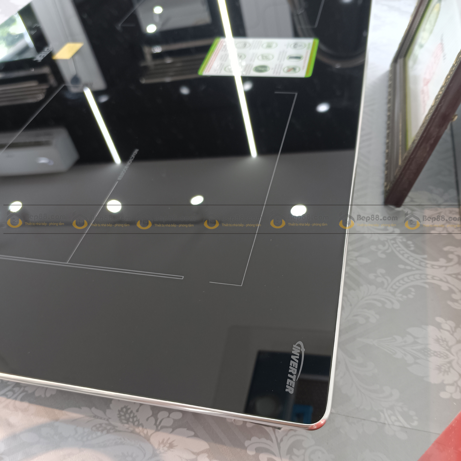 Bếp từ đôi Faster 999S Serial 8.0 sử dụng mặt kính Kanger bo viền kim loại sang trọng.