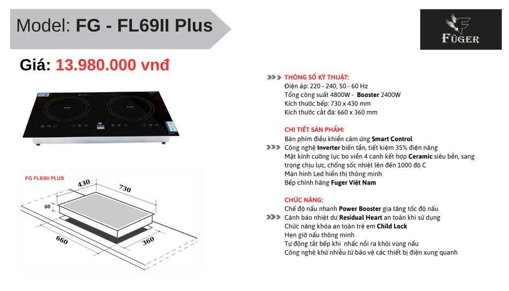 Bếp Từ Đôi Fuger FG-FL69II PLUS – Nấu Nhanh, Tiết Kiệm và An Toàn Tuyệt Đối