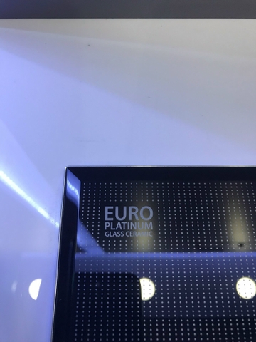 Mặt kính Euro Platinum in chấm bi vát 4 cạnh, bo viền kim loại cao cấp