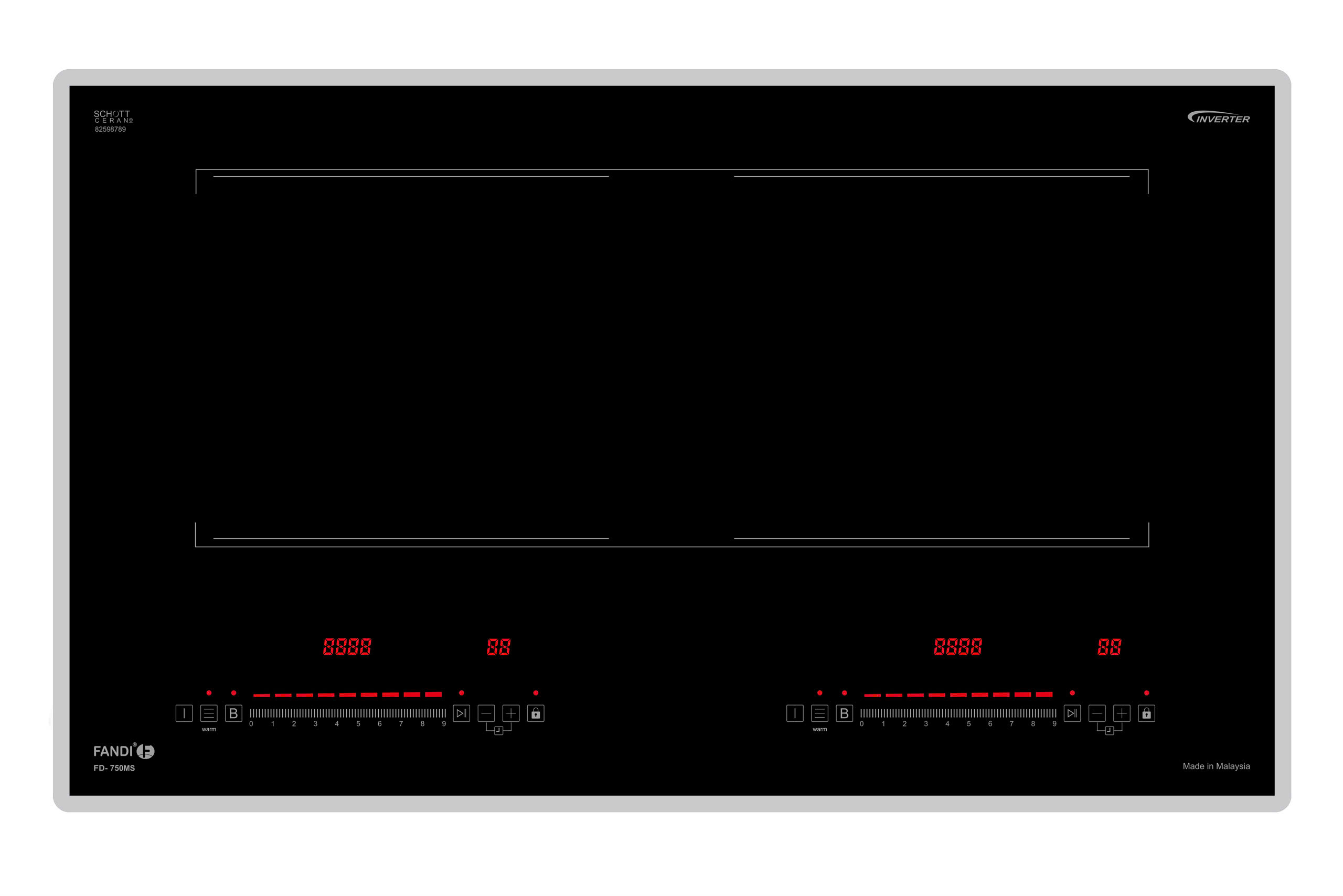Fandi FD-750MS trang bị bảng điều khiển cảm ứng Touch Slider 9 mức công suất giúp điều chỉnh nhiệt độ mượt mà, dễ thao tác. Bếp tích hợp công nghệ Inverter Dual Core giúp ổn định điện năng, tiết kiệm tới 40% điện. Công nghệ Booster hiện đại với tổng công suất lên tới 5200W giúp nấu ăn nhanh chóng, rút ngắn thời gian đến 50%. Ngoài ra, chức năng Warming với ba mức nhiệt (50°C – 60°C – 70°C) giúp giữ ấm món ăn hiệu quả mà không làm biến đổi hương vị.