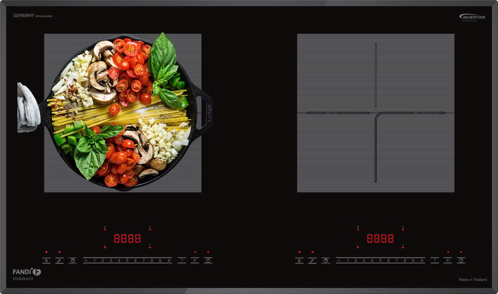 Bếp từ Fandi FD-828VCI là sản phẩm nhập khẩu nguyên chiếc từ Thái Lan, sở hữu thiết kế chỉnh chu và hiện đại, thích hợp với nhiều không gian bếp khác nhau. Bề mặt bếp sử dụng kính Vitroceramic nguyên khối vát 4 cạnh, không chỉ tạo vẻ đẹp sang trọng mà còn đảm bảo độ bền cao, khả năng chịu nhiệt và chịu lực tốt. Vùng nấu được đánh dấu rõ ràng với họa tiết độc đáo, cùng bảng điều khiển riêng biệt cho từng vùng nấu mang đến trải nghiệm sử dụng dễ dàng và trực quan.