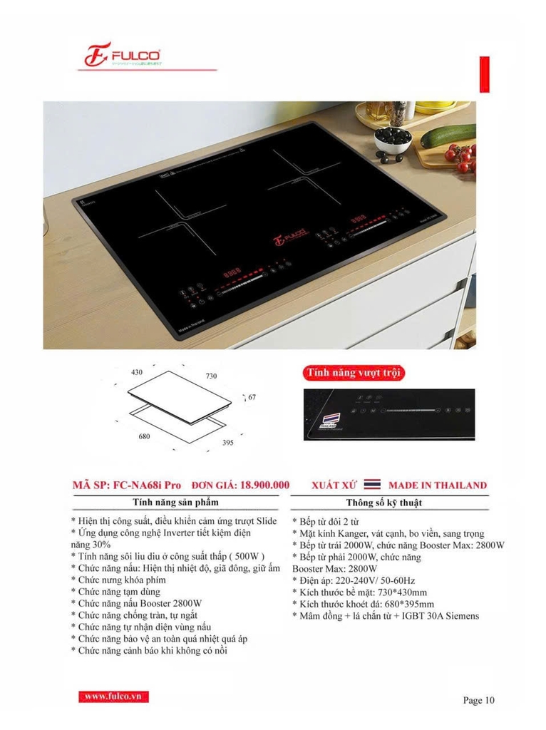 THÔNG SỐ KỸ THUẬT Bếp Từ Fulco FC-NA68i Pro