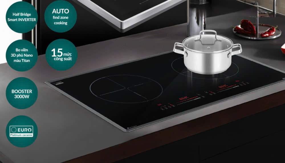 Chức năng tự động nhận diện vùng nấu Auto Find Pot: Kích hoạt vùng nấu khi có nồi đặt lên bếp.