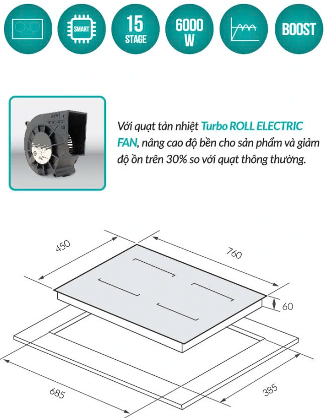 Chức năng cân bằng công suất Power Balance: Bảo vệ bếp khỏi quá tải, tăng độ bền.