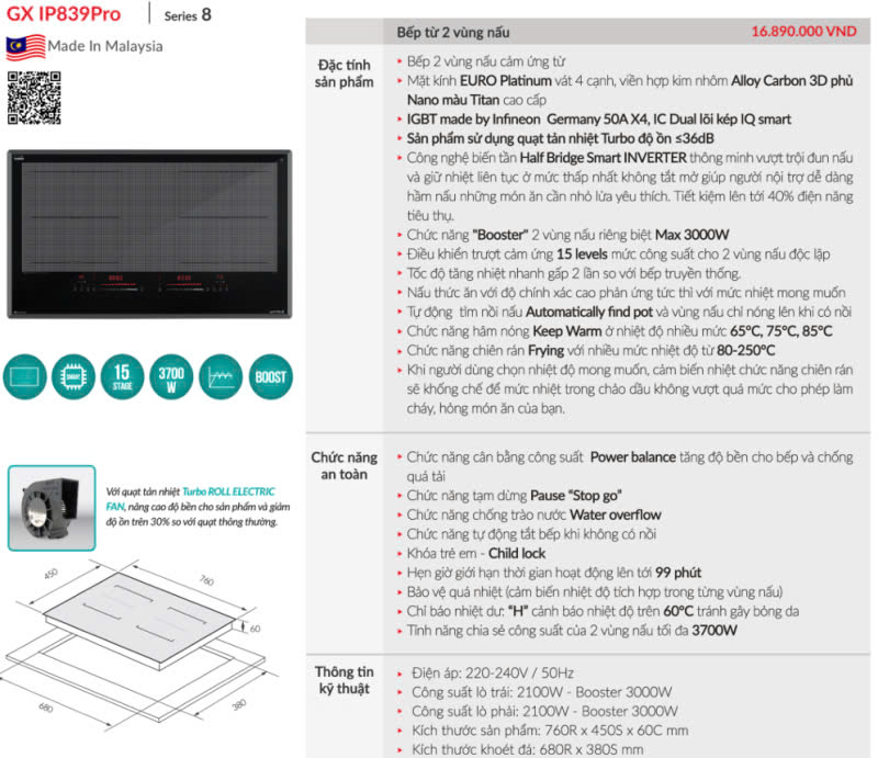 Booster: Đẩy công suất lên 3000W, giúp nấu nhanh các món ăn yêu cầu nhiệt độ cao.