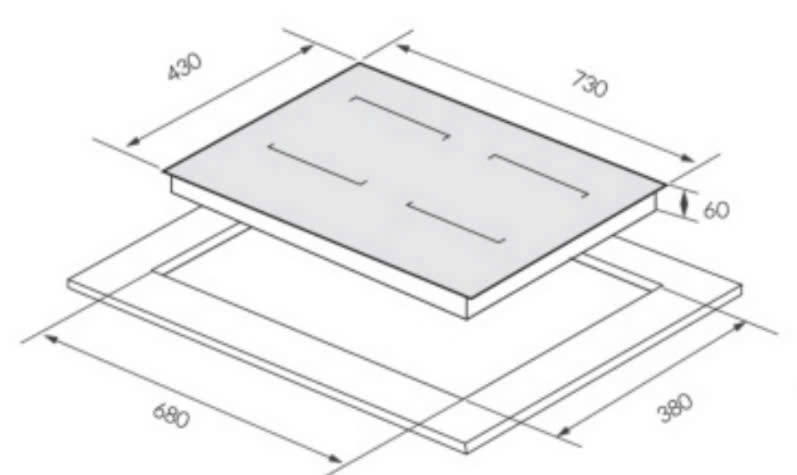 Với kích thước sản phẩm 730R x 430S x 60C mm và kích thước khoét đá 680R x 380S mm, bếp từ GrandX GX IP869Pro phù hợp với nhiều không gian bếp và dễ dàng lắp đặt.