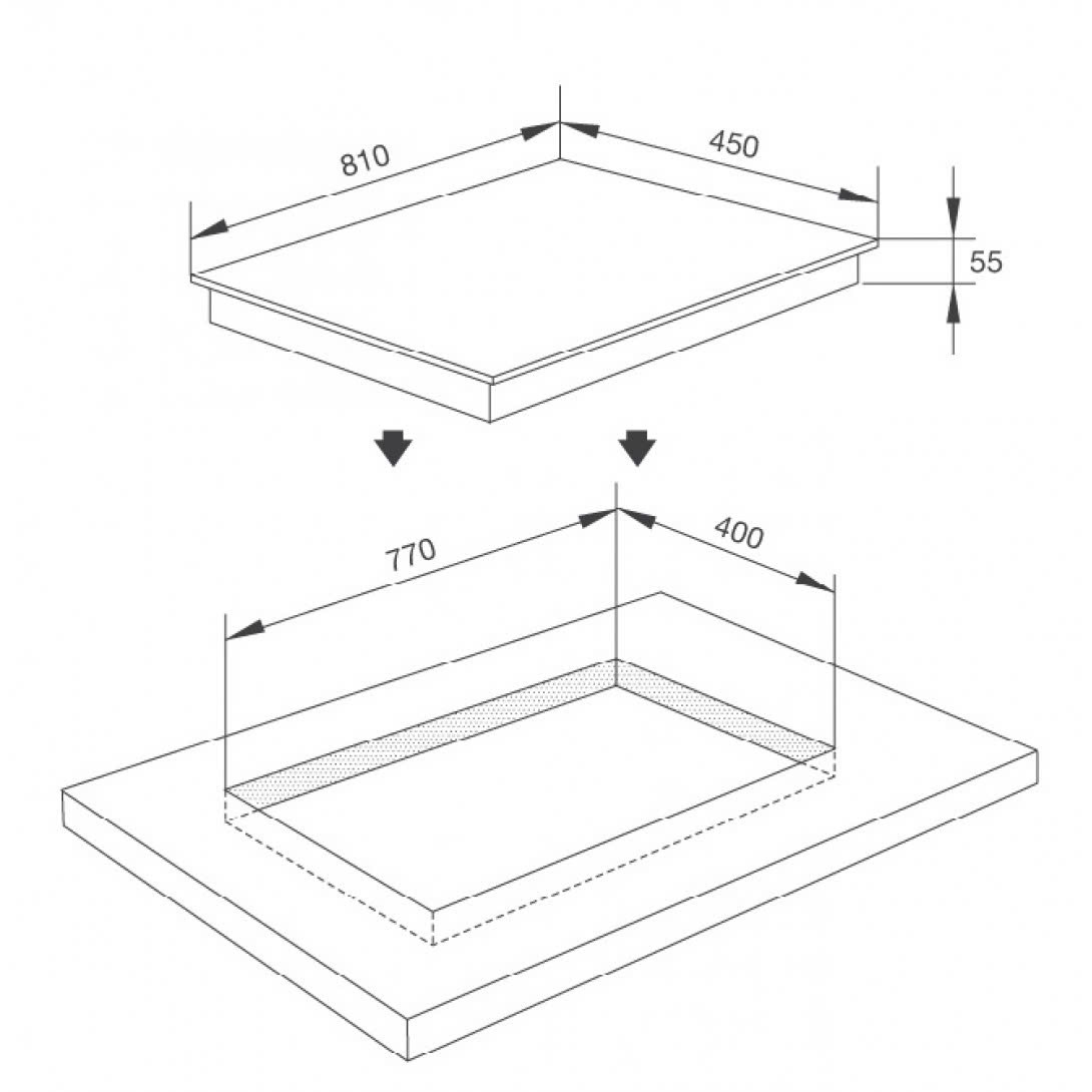 Bếp từ: 0.8/1.9kW + 1.6kW (Ø130/215) và (Ø150)
