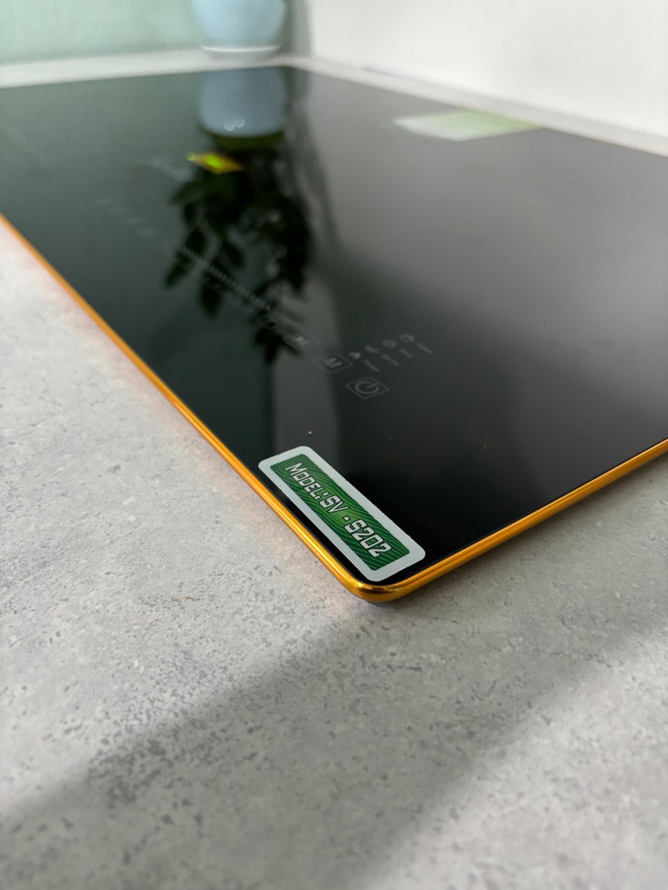- Mặt kính Kanger: Chịu nhiệt cao và chống trầy xước, được viền nhôm Aluminium màu vàng sang trọng, mang lại vẻ đẹp tinh tế cho không gian bếp của bạn.