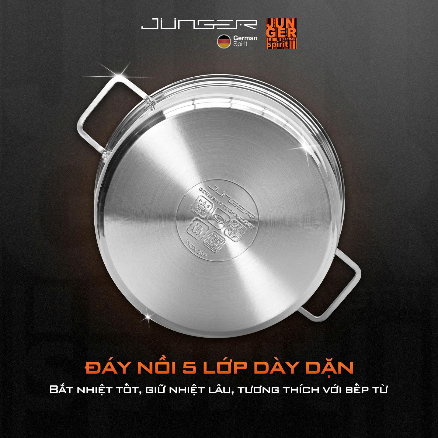 Bộ Nồi Inox Junger CWJ-070 – Dụng Cụ Nhà Bếp Cao Cấp Chuẩn Đức