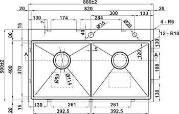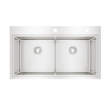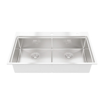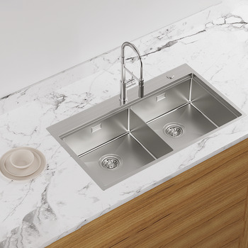 Dòng chậu đôi handmade với độ dày chậu lên đến 1.0mm cho lòng chậu và 2.0mm cho vành chậu. Góc chậu nhỏ R10 không chỉ tạo ra độ thẩm mỹ cao mà còn giúp việc vệ sinh dễ dàng hơn bao giờ hết.