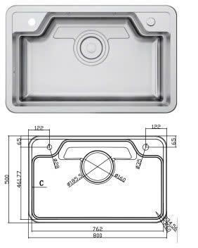 - Hộc chậu được thiết kế vuông vắn, mang lại vẻ sang trọng và dễ dàng phối hợp với các thiết bị bếp khác.