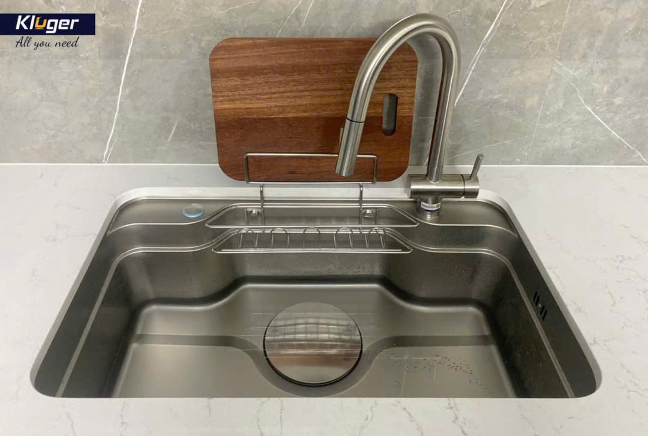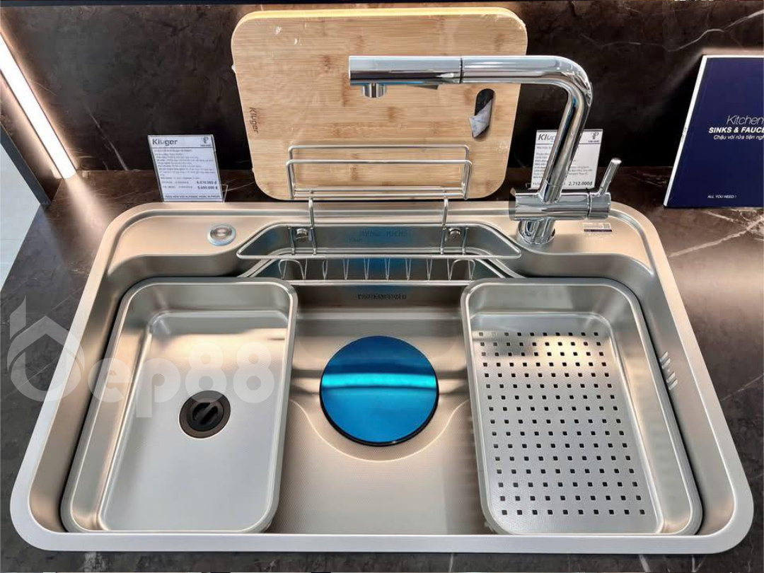 | Phụ kiện đi kèm | Siphon SLIM, Bát rác Kluger, Giỏ inox KB-602, Thớt gỗ KCB-102W, Chậu rửa nhỏ inox KSWB-405FS, Chậu rửa nhỏ inox có lỗ KSWB-405FSH |
