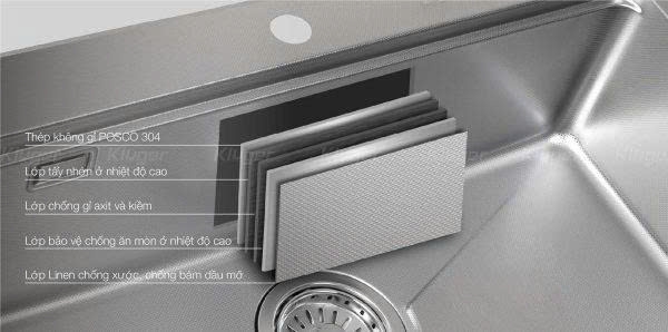 Khi xả nước hoặc rửa bát, âm thanh được giảm thiểu rõ rệt, mang lại sự thoải mái, đặc biệt trong các căn hộ chung cư hoặc gia đình có không gian bếp liền kề phòng khách.