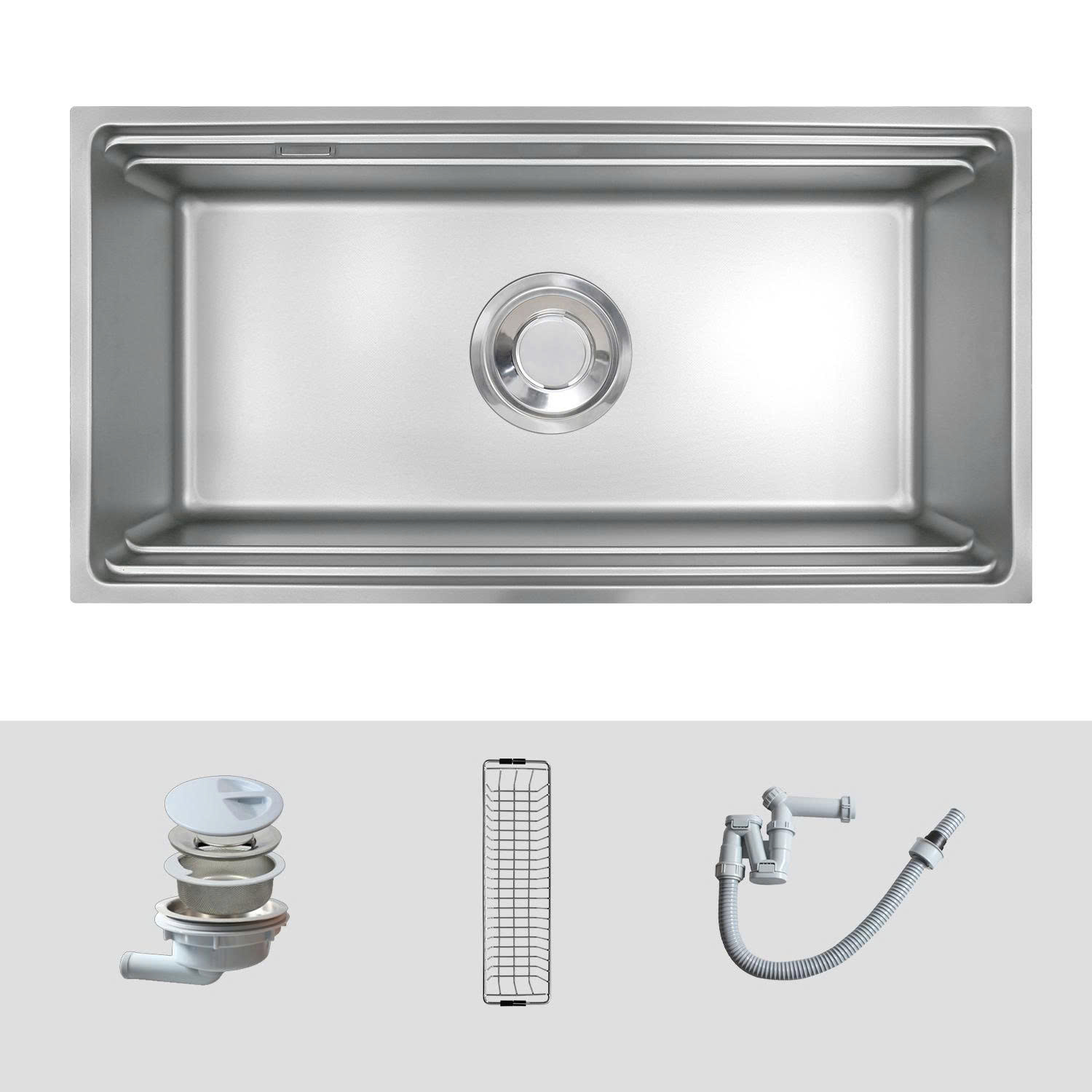 a. Giỏ inox kèm theo, có thể rửa rau củ, úp bát hoặc lọc rác.