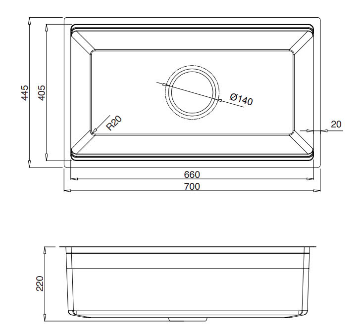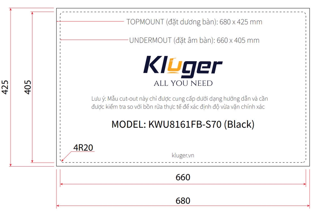 - Under Mount (Âm bàn): W660 x D405 (mm), bán kính góc 4 x R20.