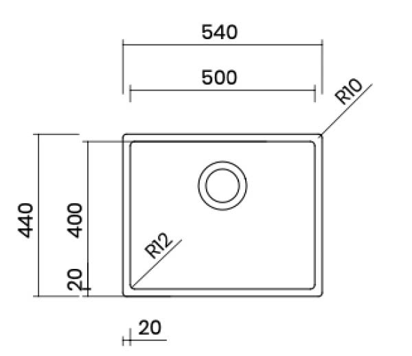 Góc lượn R12 bo tròn giúp dễ dàng vệ sinh.