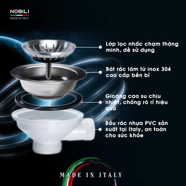 Bộ Siphon nhập khẩu Italy, chất liệu nhựa cao cấp, an toàn, chống các loài gặm nhấm.
