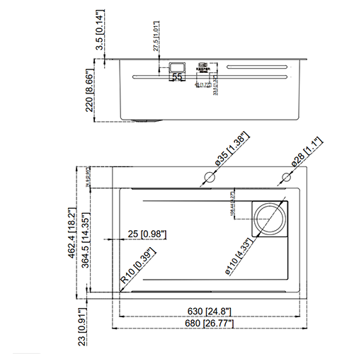 - Lòng chậu sâu: Độ sâu 220mm tăng dung tích hố, hạn chế bắn nước khi rửa.