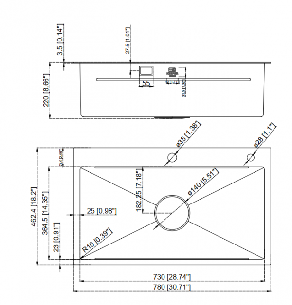 - Hệ thống thoát nước tối ưu: Bao gồm bát rác kích thước lớn và xiphon tiết kiệm không gian, giúp ngăn ngừa tắc nghẽn.