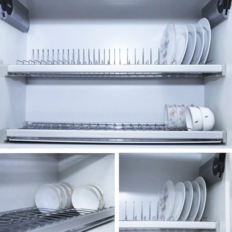 Cấu trúc 2 tầng hợp lý: Tầng trên dùng cho bát, tầng dưới dùng cho đĩa – giúp dễ dàng phân loại, cất và lấy đồ không xáo trộn.