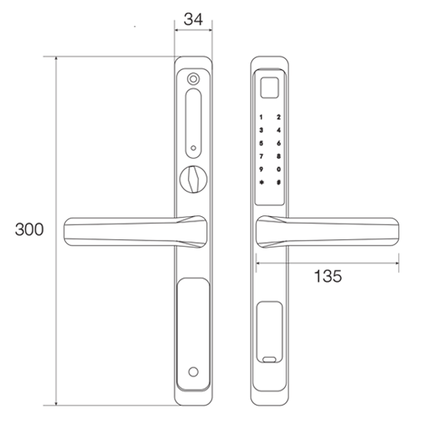 - Kích thước thân khóa : 34 x 300 mm