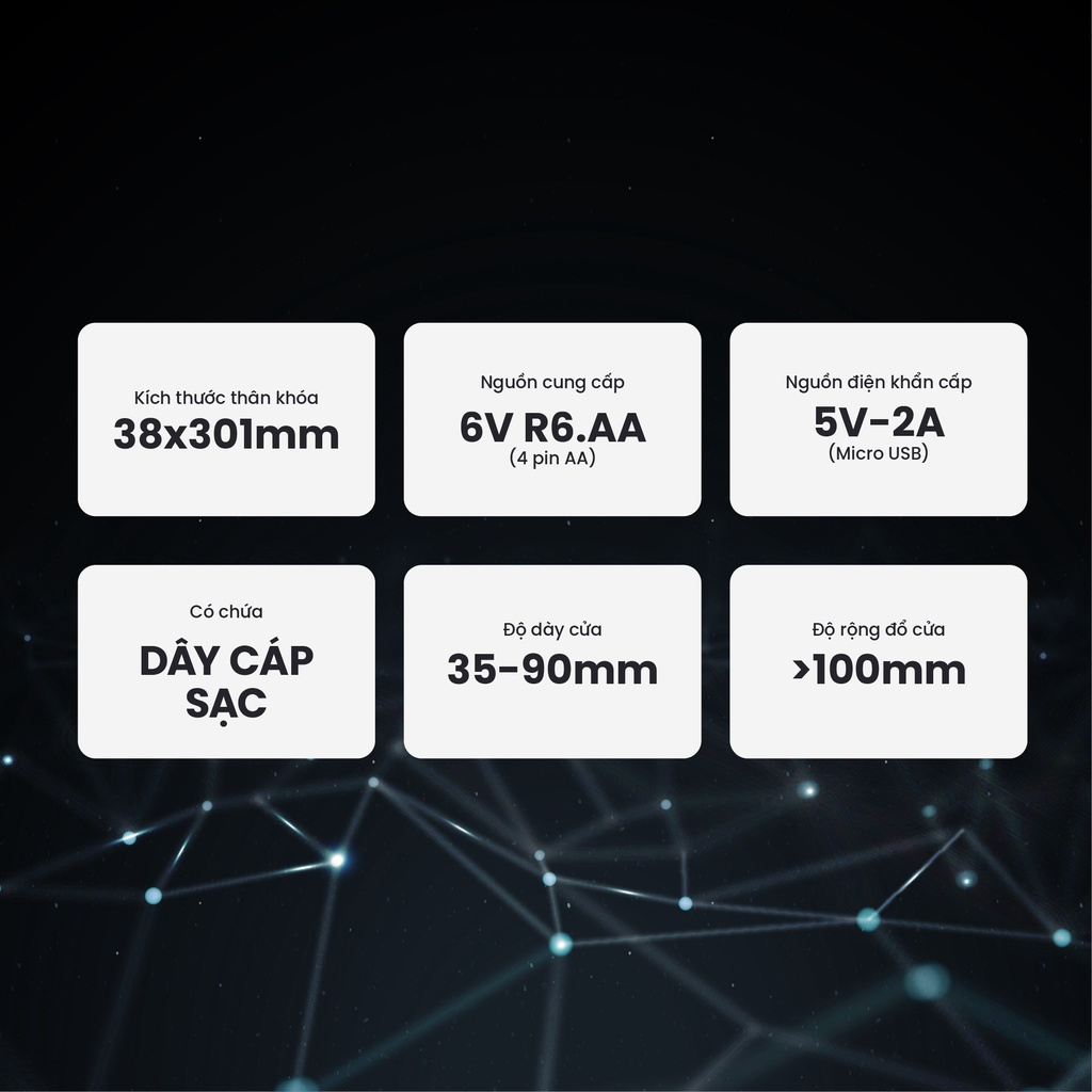 - Nguồn điện khẩn cấp : 5V-2A, Micro USB