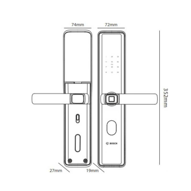 Kích thước linh hoạt: Khóa thông minh BOSCH SMARTLOC ID 30 EU phù hợp với cửa có độ dày từ 40-100mm, dễ dàng lắp đặt trong nhiều loại cửa khác nhau.