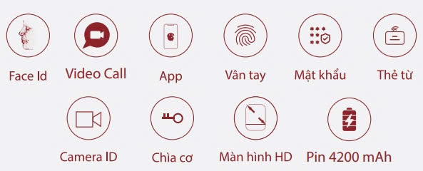 Phương thức mở khóa: Nhận diện khuôn mặt 3D, vân tay, mật mã, thẻ từ, chìa cơ
