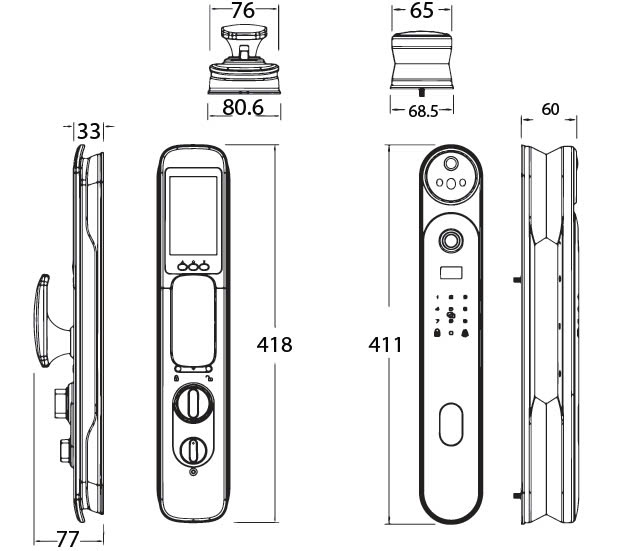 Kích thước của thân khóa ngoài là 85 x 60 x 60 mm, trong khi thân khóa trong có kích thước 70 x 48 x 77 mm, phù hợp với nhiều loại cửa khác nhau. Lối khóa có kích thước 60-68-6 mm, dễ dàng lắp đặt và sử dụng.