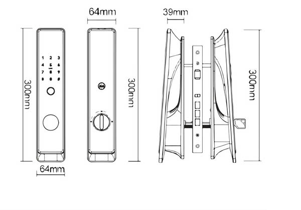 Kích thước thân khóa ngoài: 64 x 230 x 58 mm
