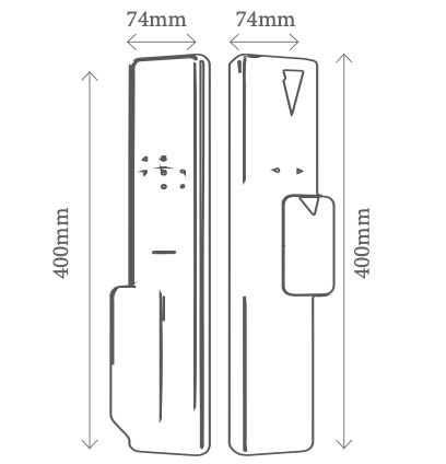 Kích thước thân khóa trong: 74 x 400 x 73.5 mm
