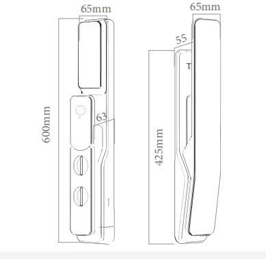 Kích thước thân khóa ngoài: 86 x 600 x 63 mm