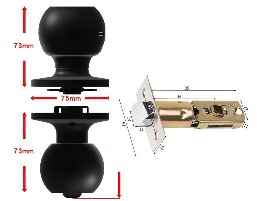 Kích thước sản phẩm nhỏ gọn, với 75 x 73 mm, phù hợp lắp đặt cho mọi loại cửa.