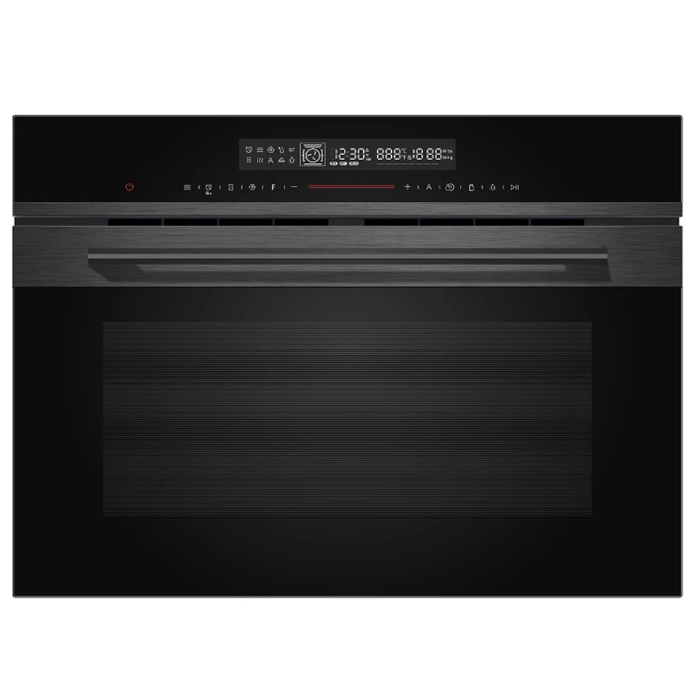 Lò được thiết kế âm tủ, mang lại sự gọn gàng và hiện đại cho không gian bếp. Mặt kính đen sang trọng kết hợp cùng thép không gỉ chống bám vân tay giúp dễ dàng vệ sinh. Bảng điều khiển cảm ứng kết hợp núm xoay tạo sự thuận tiện và trực quan trong quá trình sử dụng.