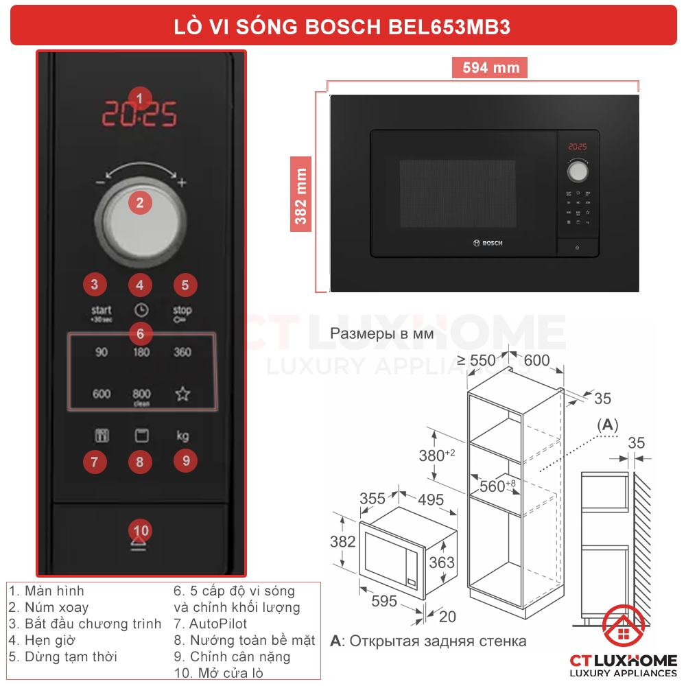 Lò Vi Sóng Bosch BEL653MB3 – Âm Tủ Sang Trọng, Nấu Nhanh, Tiện Lợi