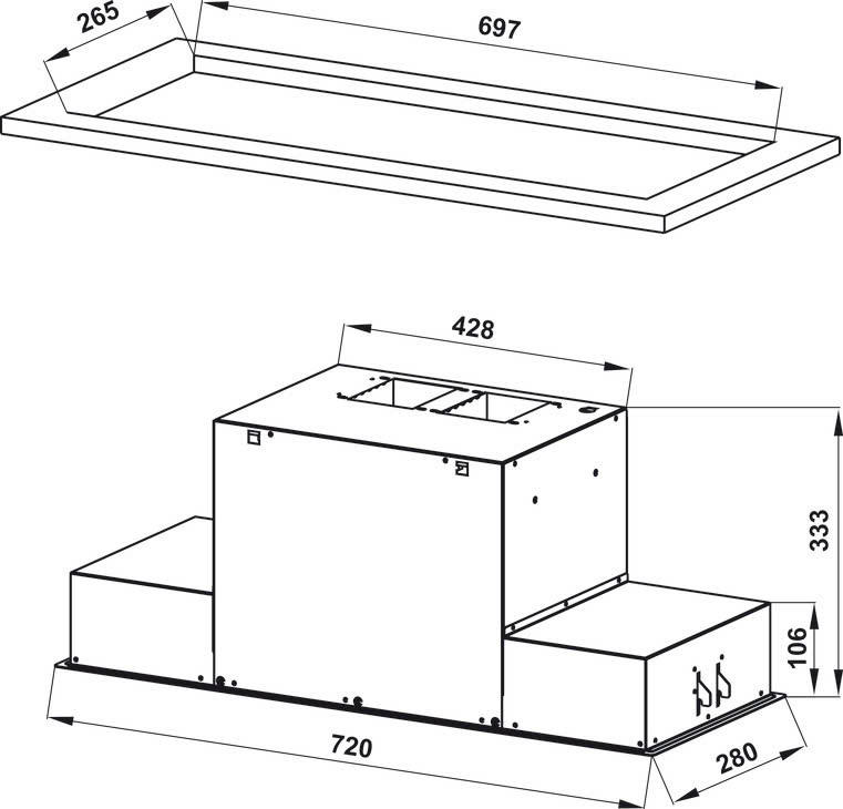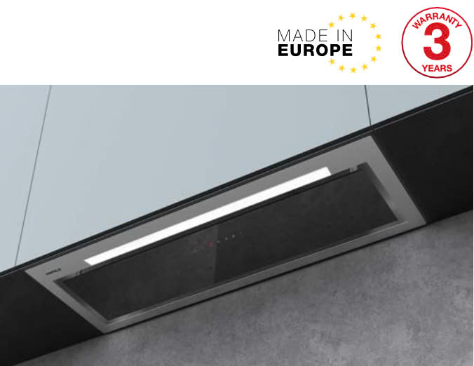 Hút mùi bằng than hoạt tính hoặc thoát ra ngoài bằng ống Ø150mm – linh hoạt theo thiết kế không gian bếp.