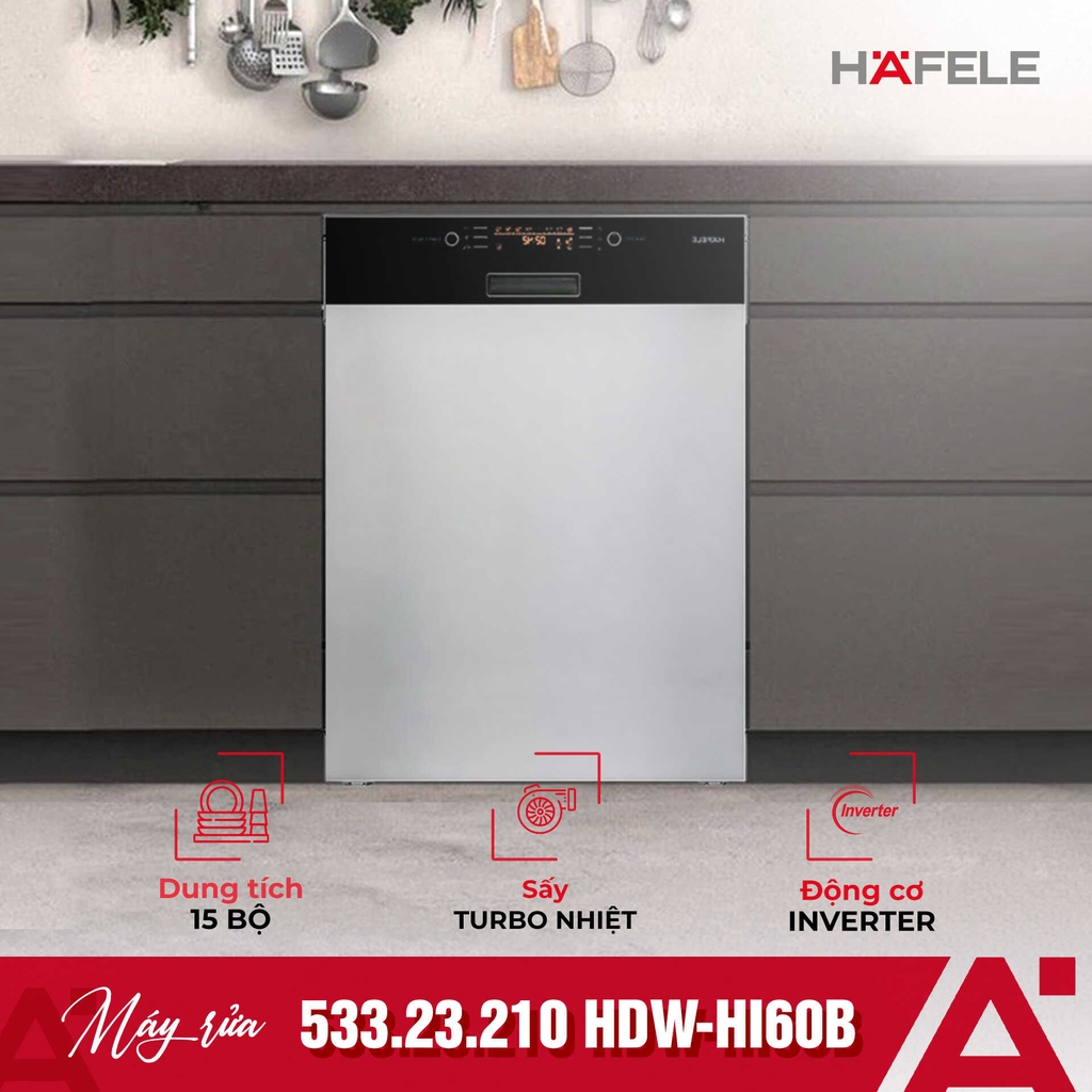 y rửa chén bán âm Hafele HDW-HI60B 533.23.210 là lựa chọn hoàn hảo cho những ai mong muốn một thiết bị vừa đẹp mắt, vừa tiện ích, vừa bền bỉ. Với dung tích lớn, công nghệ rửa thông minh, khả năng tiết kiệm năng lượng và độ ồn thấp, sản phẩm này chắc chắn sẽ trở thành “trợ thủ đắc lực” trong gian bếp của bạn, giúp việc nội trợ nhẹ nhàng và thoải mái hơn bao giờ hết.