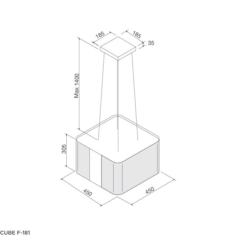 Máy hút khói, khử mùi CUBE F-181 là dòng máy decor treo độc lập nổi bật với kiểu dáng vuông vắn, tinh tế. Sản phẩm sử dụng chất liệu Inox và Inox sơn đen cao cấp, vừa đảm bảo độ bền cao, vừa mang lại vẻ đẹp hiện đại, phù hợp với nhiều không gian bếp đảo. Thiết kế tối giản nhưng đậm chất nghệ thuật, phù hợp cho gia chủ yêu thích sự khác biệt.