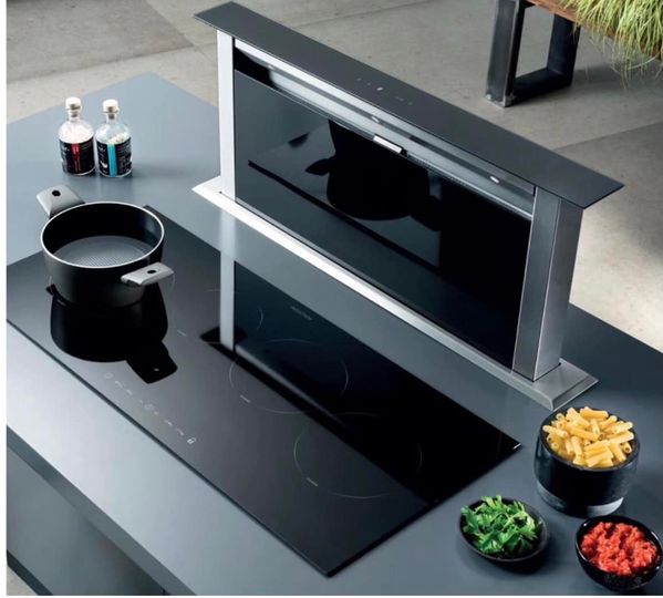 - Khởi động: Chạm vào bảng điều khiển cảm ứng, máy tự động trồi lên từ mặt bếp.