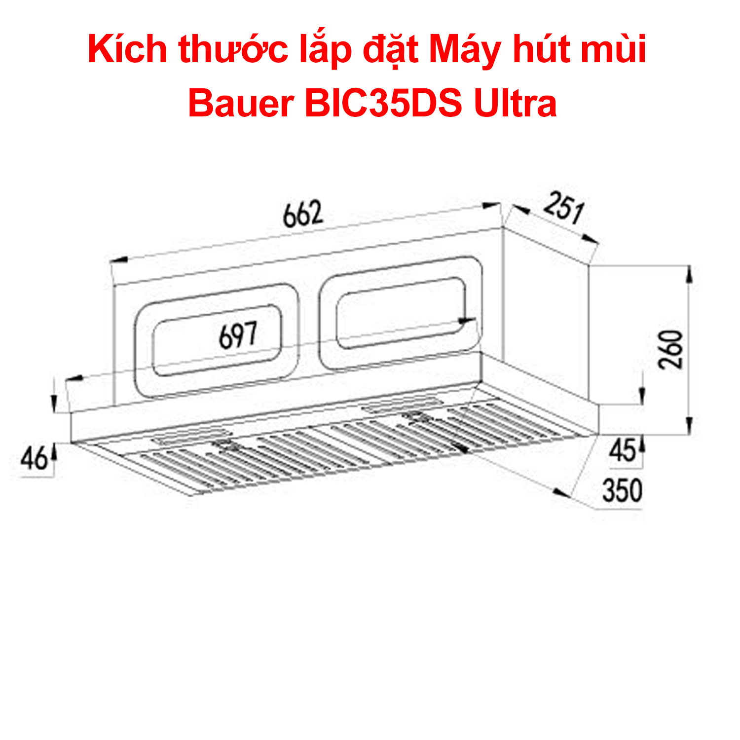 Kích thước lắp đặt Máy hút mùi Bauer BIC35DS Ultra