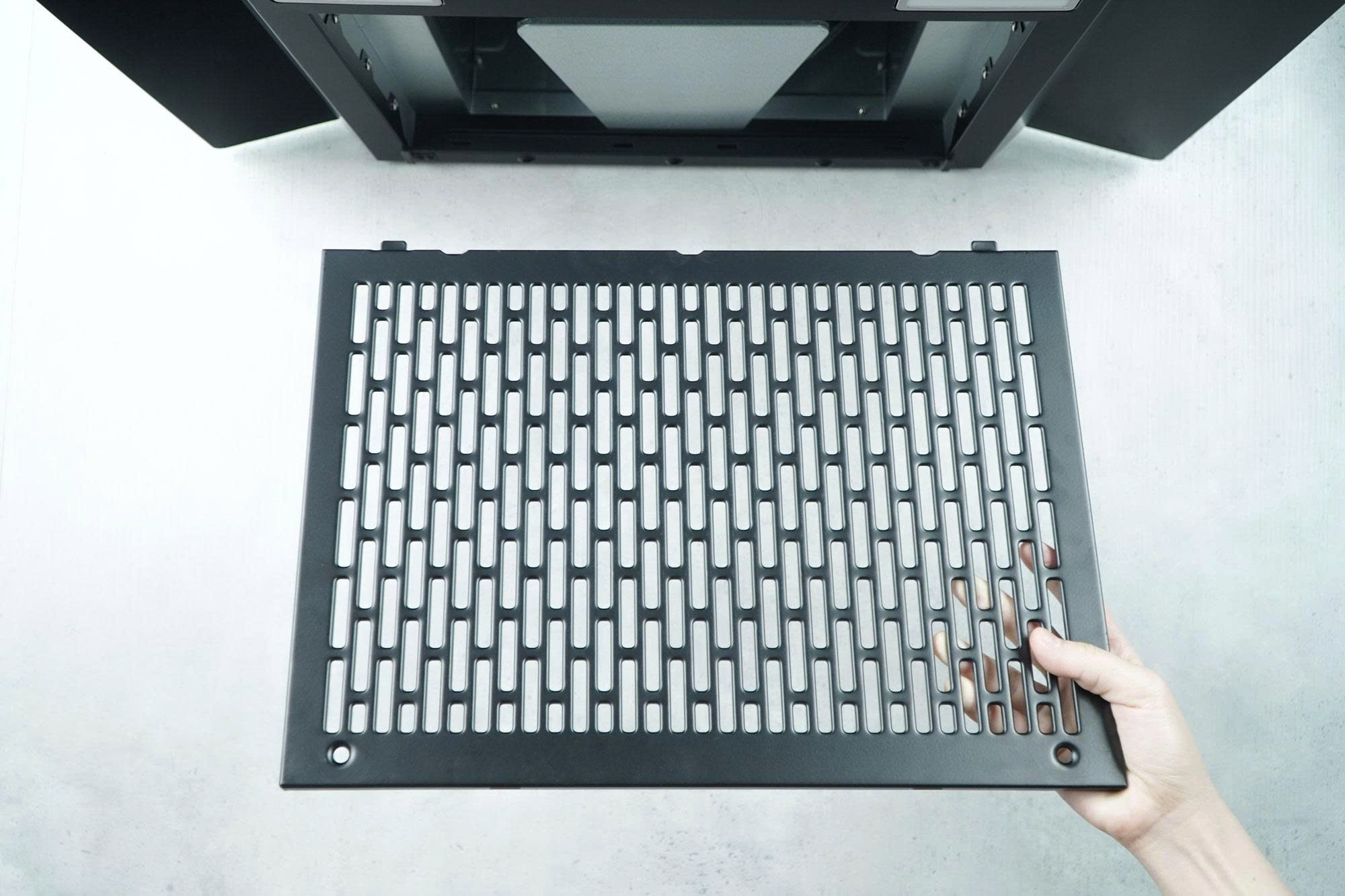Chef's EH-R308E7G được trang bị lưới lọc kim loại Baffle sơn tĩnh điện, không cần thay thế trong suốt quá trình sử dụng. Máy còn tích hợp bộ thu dầu mỡ Oil Collector giúp gom dầu hiệu quả, hạn chế chảy ngược vào động cơ.