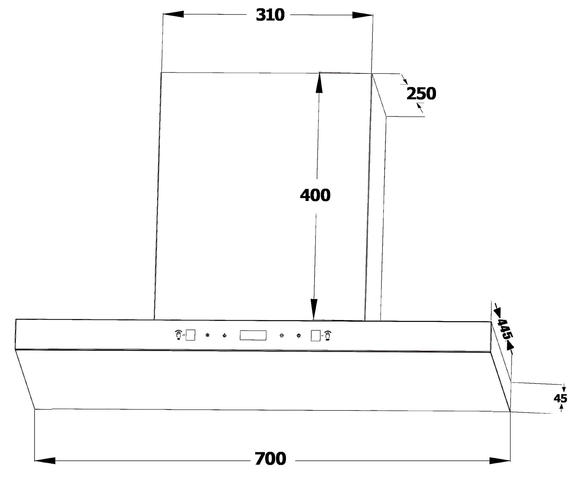 Máy hút mùi Chef's EH-R105E7G được thiết kế theo kiểu dáng chữ T, kích thước 700x455x400mm, mang đến sự nhỏ gọn nhưng vô cùng tinh tế cho không gian bếp. Bề mặt kính cường lực màu đen không chỉ tạo điểm nhấn nổi bật mà còn dễ dàng vệ sinh, giữ cho sản phẩm luôn mới mẻ và sạch sẽ.