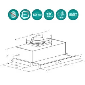 Công suất hút ấn tượng: Đạt ±900m³/h, nhanh chóng loại bỏ khói, hơi nóng, mùi thức ăn.
